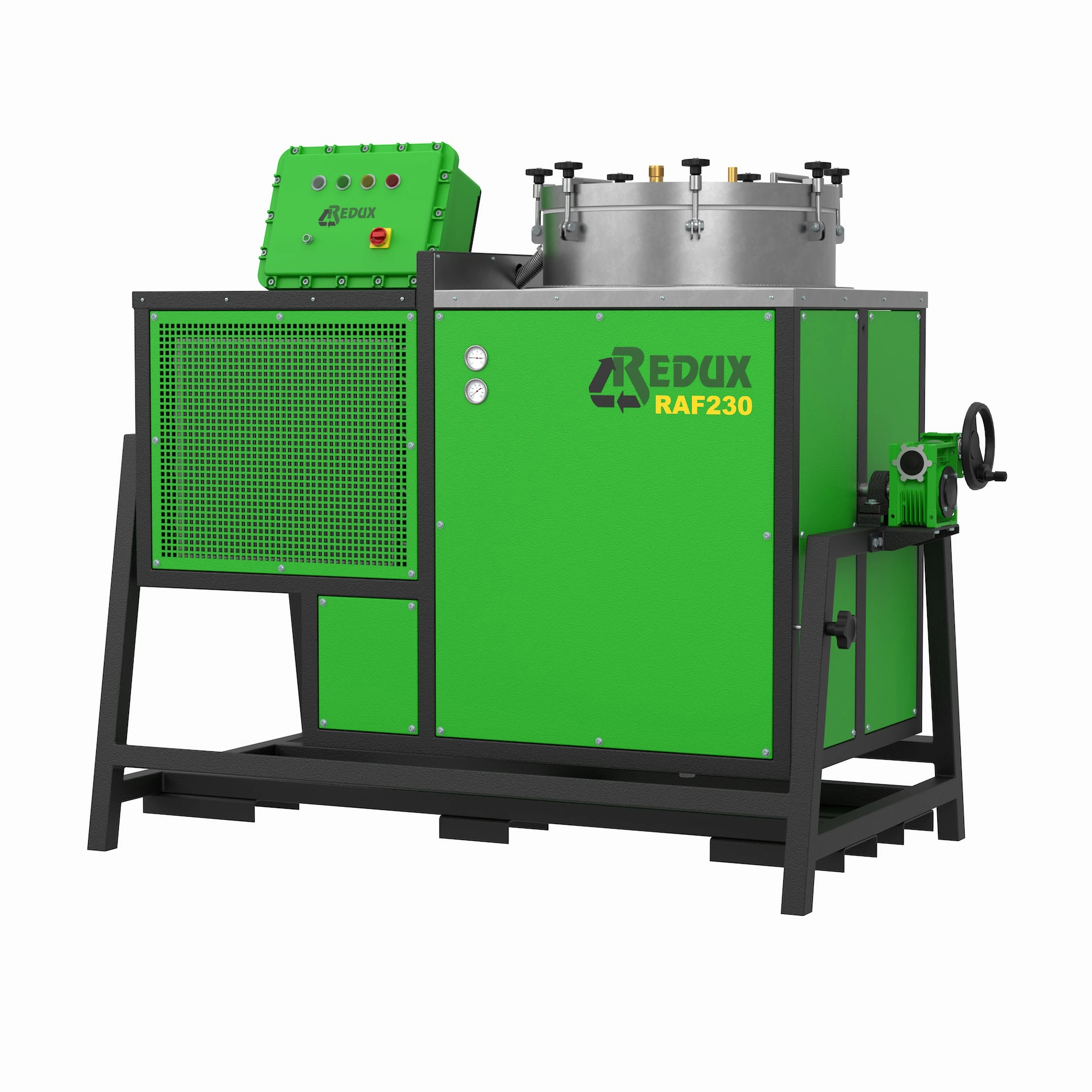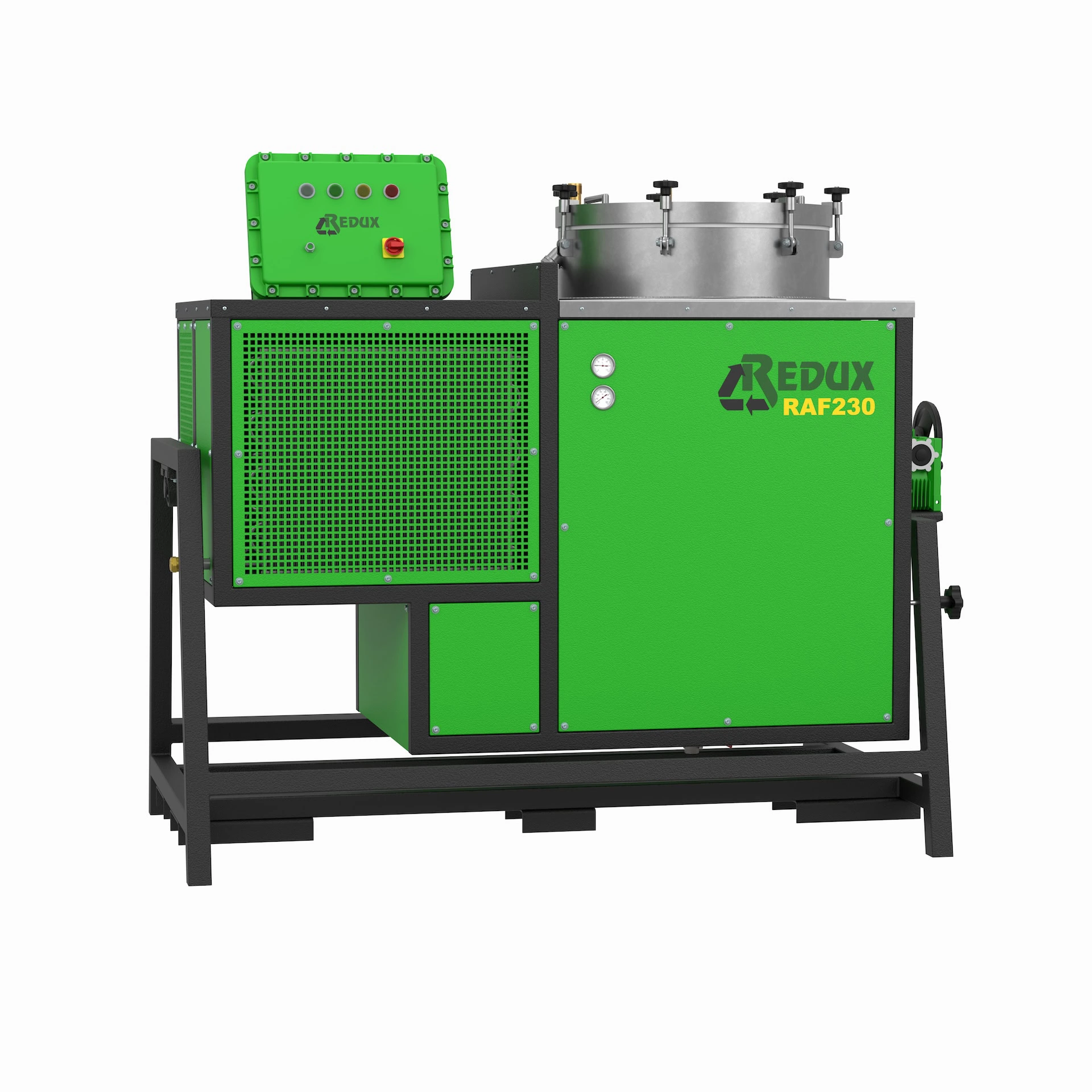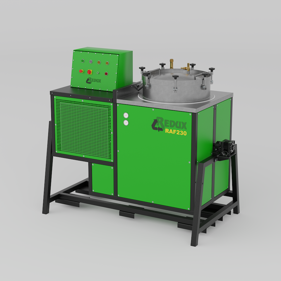 Firma Redux destylatory z serii RAF 230 produkuje w Polsce. Uwzględniane są przy tym surowe normy Unii Europejskiej. Urządzenia posiadają także certyfikat ATEX. Rozpuszczalnik może być tu oczyszczony z takich substancji, jak: farby, oleje, tłuszcze oraz żywice. Na wyposażenie urządzenia składają się: zbiornik o rzeczywistej pojemności załadunkowej 230 l oraz pokrywy wykonane z nierdzewnej stali INOX.