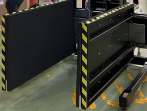 - Dodatkowo, aby zapewnić stabilne podparcie ładunku, maszyna wykorzystuje dwa wysuwane „ostrza/skrzydła stalowe”, które wsuwają się pomiędzy najniższą warstwą produktu a paletą.