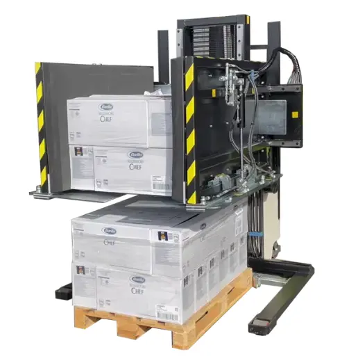 Ten typ maszyny jest rodzajem hybrydy posiadającej dwie główne funkcje: wymiany palet oraz sztaplowania / desztaplowania ładunków na paletach.